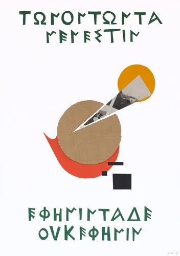 This work borrows classic elements of Russian suprematist composition, mixing them with baroque excess to illustrate one of the maxims of the great Stoic philosopher, Epictetus (50-135AD).